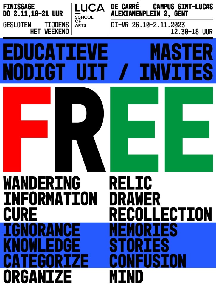 - Group exhibition at the Carré, LUCA School of Arts Gent, November 2023.